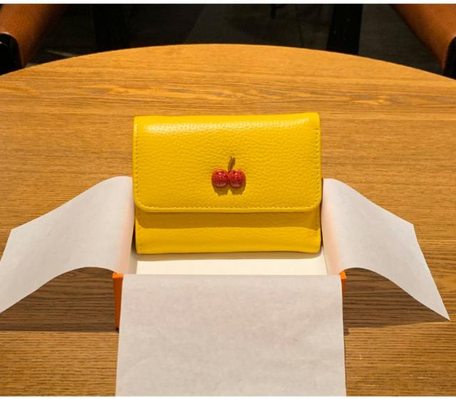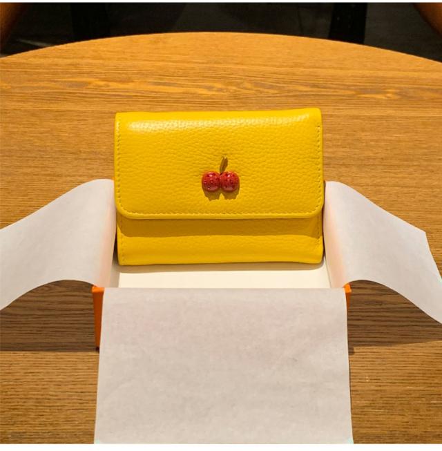 ミニ財布 チェリー 三つ折り財布 ミニウォレット コインケース 小銭入れ 財布 カードケース レディース ボタン 大容量 実用的 多機能 ギフト-16
