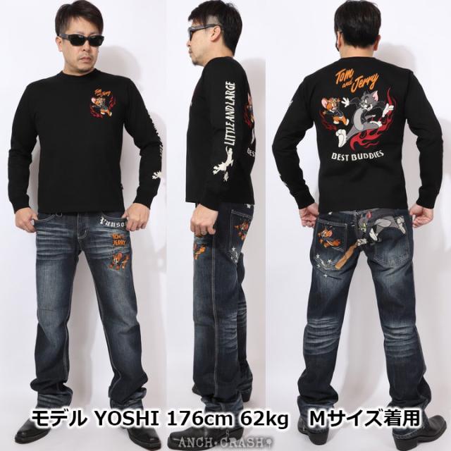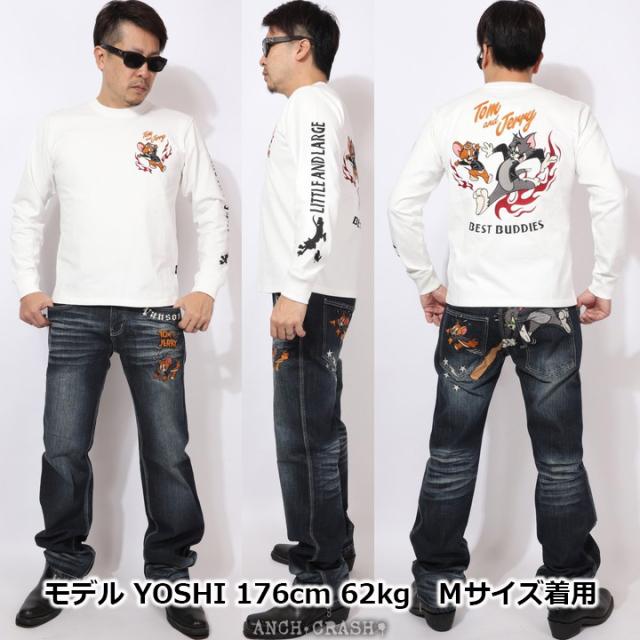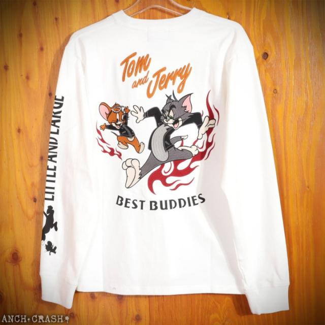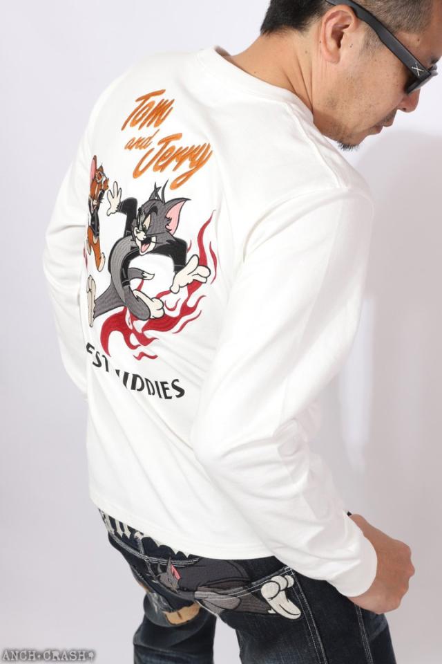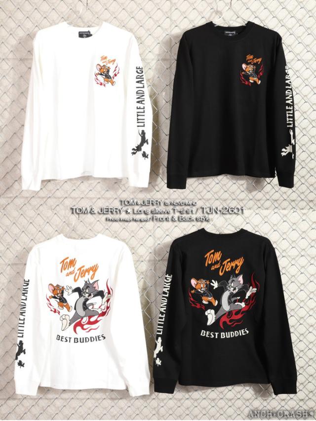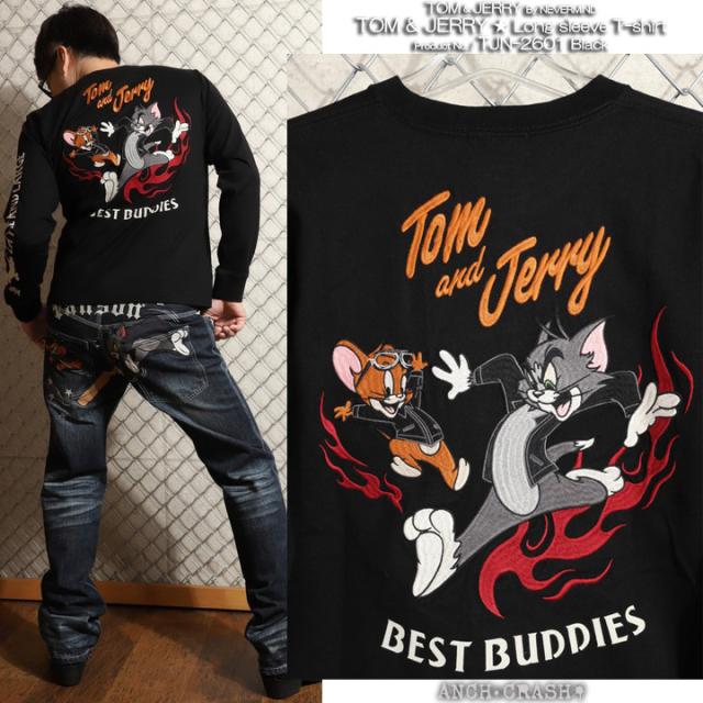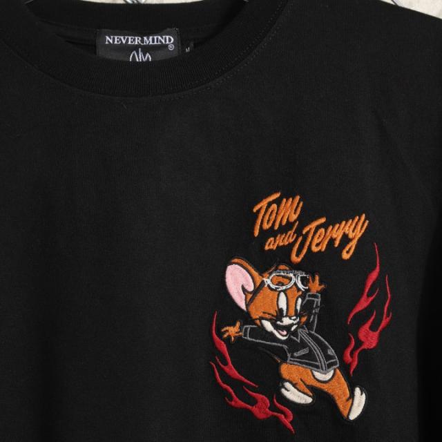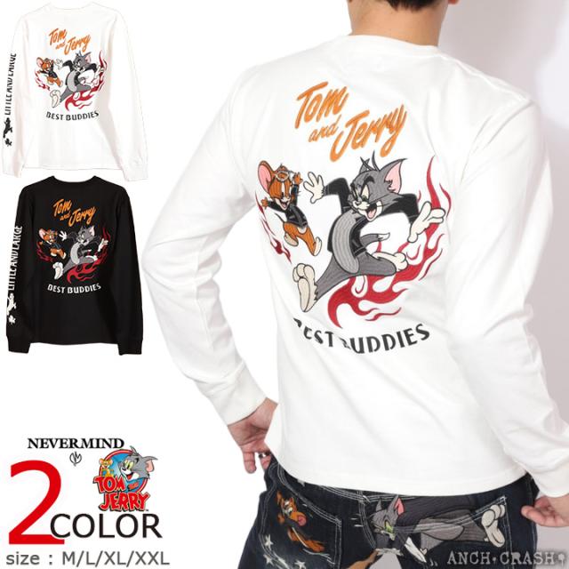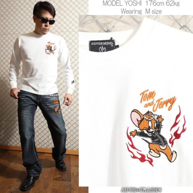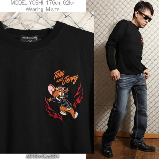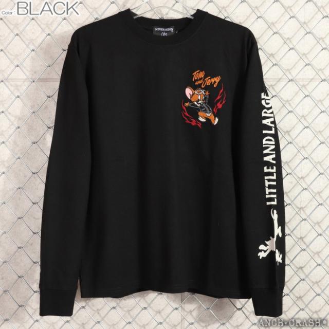 トムとジェリー ロンTEE (TJN-2601) 【送料無料】TOM AND JERRY NEVERMIND 刺繍 長袖Tシャツ