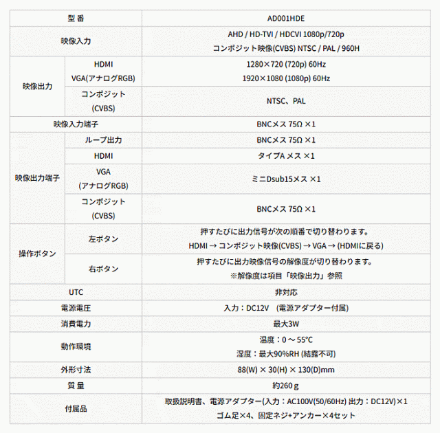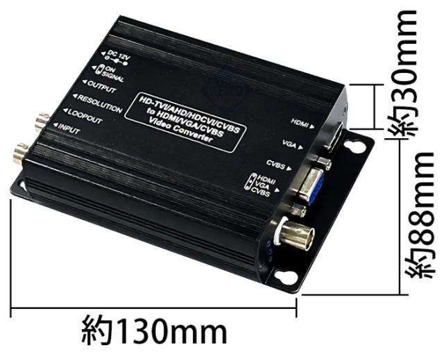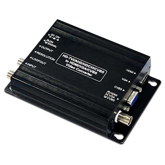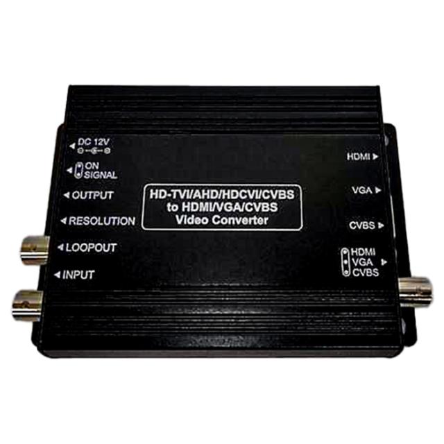 AHD・HD-TVI・HDCVI・コンポジット(CVBS)信号を、HDMI・VGA(アナログRGB)・コンポジット(CVBS)のいずれかに変換する信号変換器(※変換された信号は同時に出力することはできません)