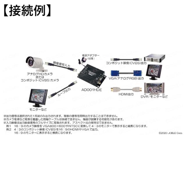 AD001HDE | AHD/HD-TVI/HDCVI/コンポジット映像 → HDMI・VGA・コンポジット映像コンバーター(ループ出力付)【防犯カメラ】【監視カメラ】【コンバーター】