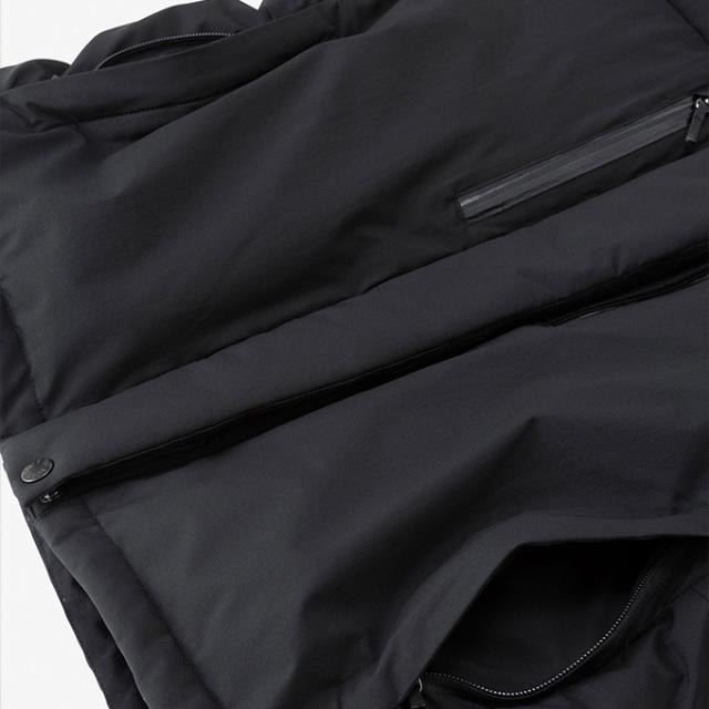 中わた入りの内襟やフロントのダブルフラップなどでコールドスポットを軽減。