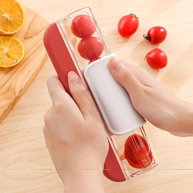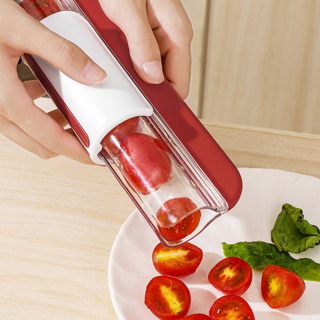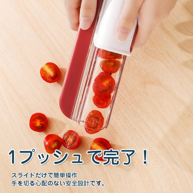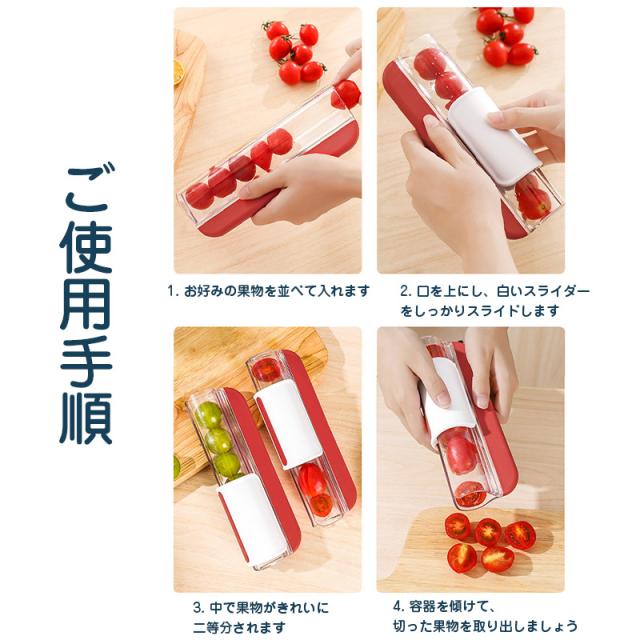 ぶどうカッター ミニトマトスライサー 薄切り器 プチトマトカッター フルーツカッター サラダ キッチン調理器具 時短 まとめ切り 半分 果物 野菜