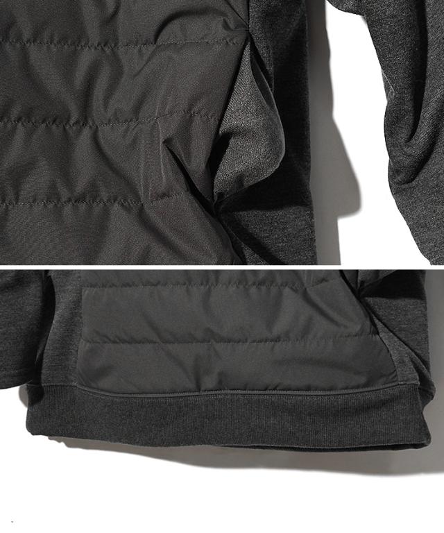 風を感じやすいフロント・バックには中綿を敷き詰め、