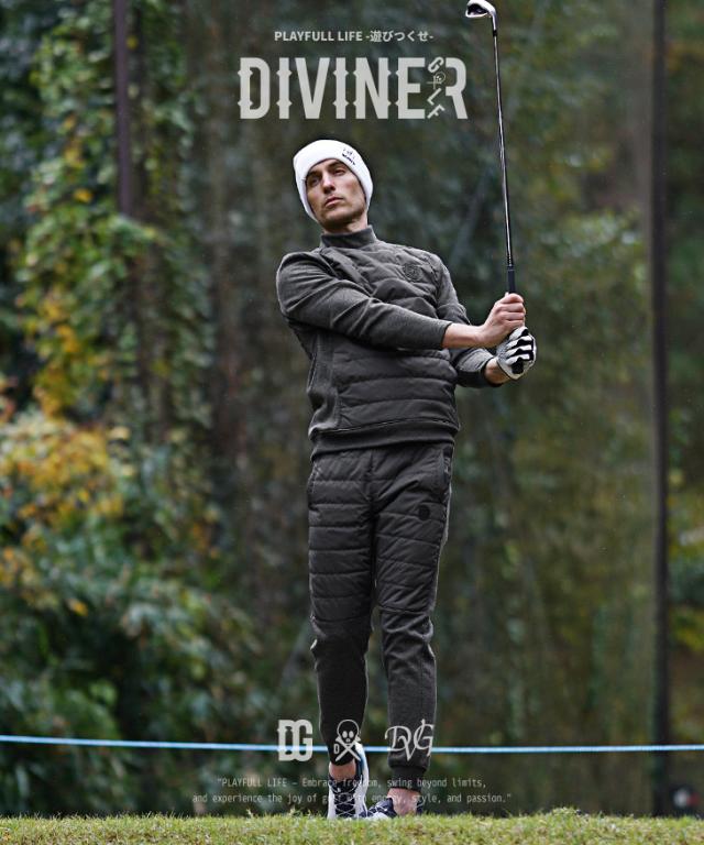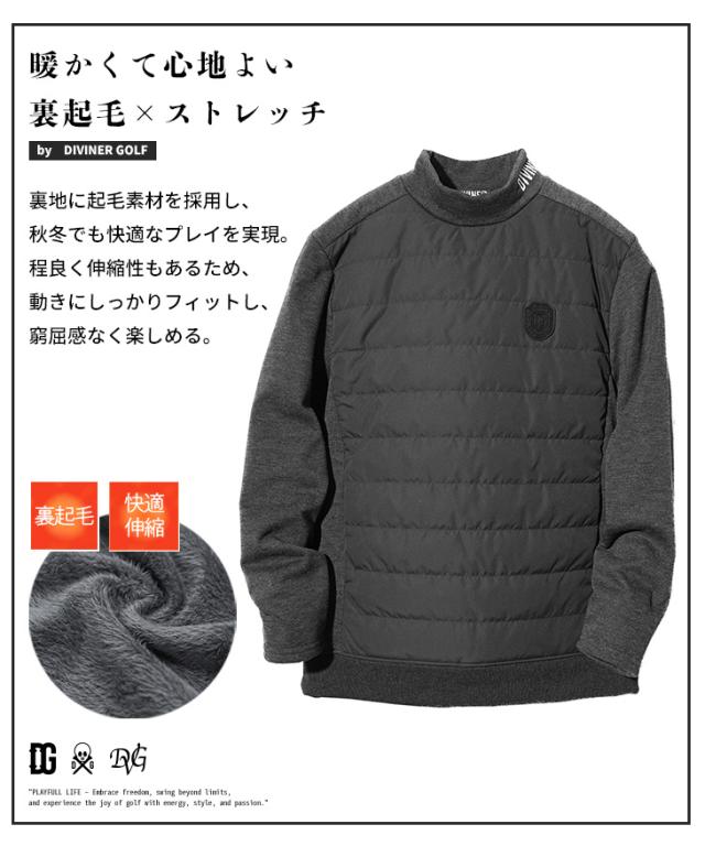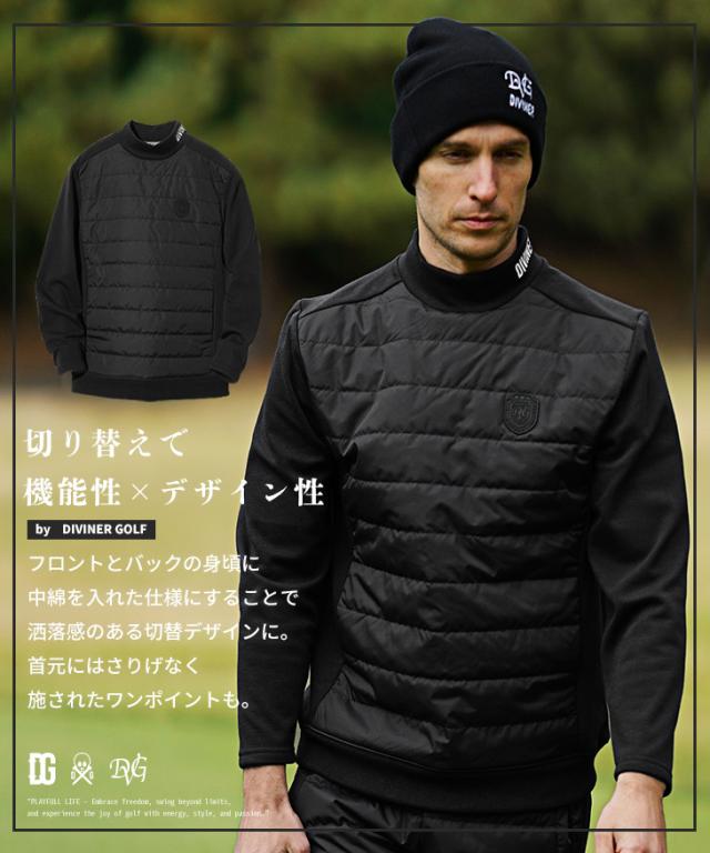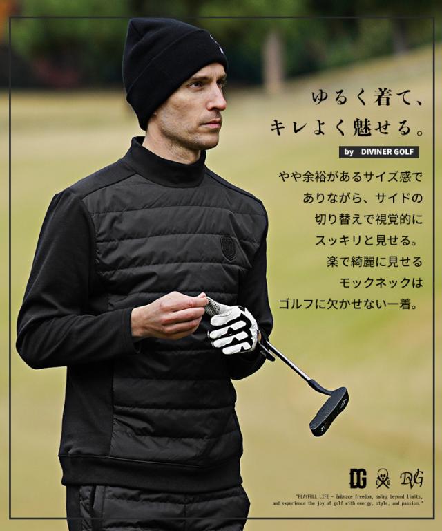 【DIVINER GOLF】 ゴルフウェア メンズ 冬 モックネック 中綿 キルティング 防寒 ゴルフ トップス スリム 冬用 プルオーバー 細身 ブランド ブラック チャコール 大きいサイズ XL XXL 冬服 冬物 ジョーカー JOKER ディバイナーゴルフ 新作 冬新作