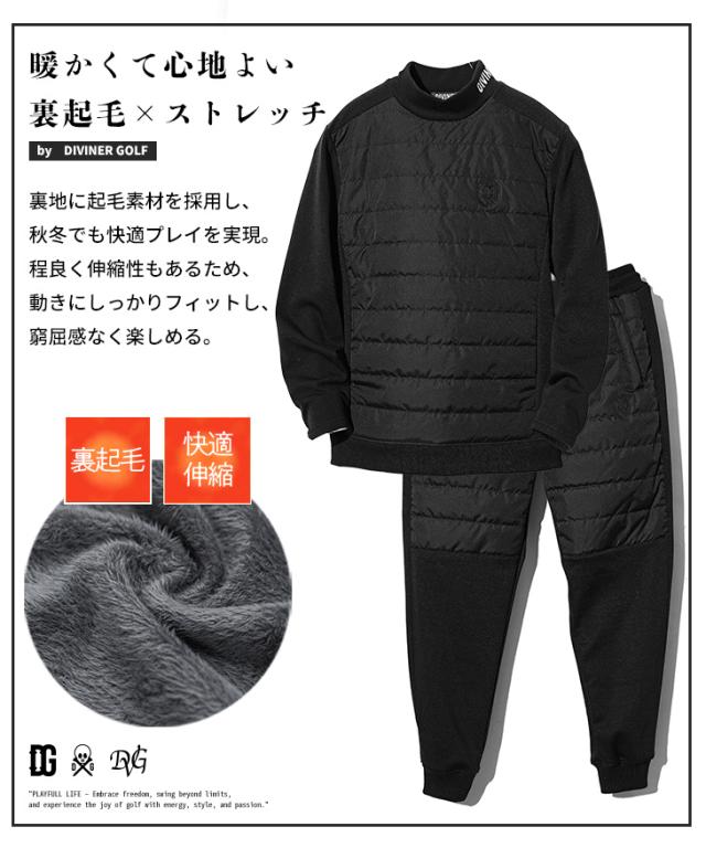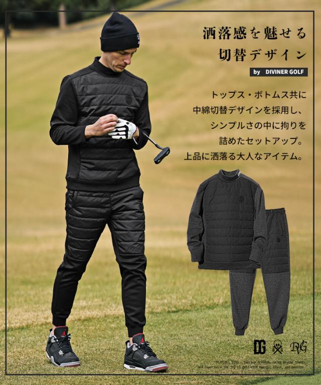 【DIVINER GOLF】 ゴルフウェア セットアップ 冬 上下セット 中綿 キルティング モックネック 防寒 ゴルフ セットアップ スリム 冬用 ジョガーパンツ 細身 ブランド ブラック チャコール 大きいサイズ XL XXL 冬服 冬物 ジョーカー JOKER ディバイナーゴルフ 新作 冬新作