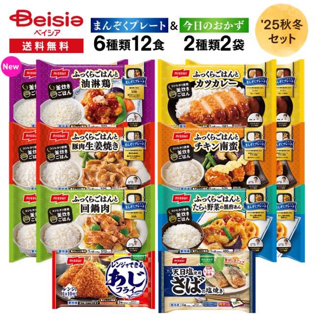 【ポイント5倍★12/5限定】まんぞくプレート 6種類12食と2種類のお惣菜 アソートセット | ニッスイ 冷凍ワンプレート ごはんとおかず 和洋中 定食 惣菜 バラエティセット 詰め合わせ お取り寄せ 満足プレート ふっくらごはん トレー付き