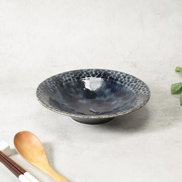 落ち着いた紺色と、縁を彩る繊細な波模様が美しい多用鉢の4点セットです。
