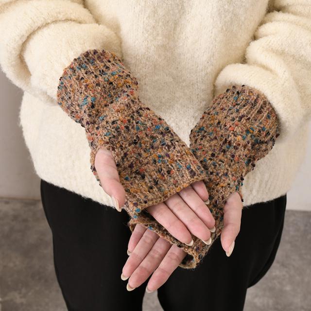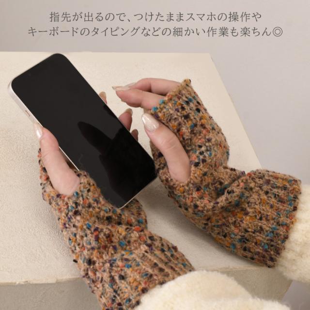 新作 ハンドウォーマー レディース 手袋 アームウォーマー アームカバー 指なし 暖かい 短め カラーネップ スマホ 冬 防寒 洗える おしゃれ 通勤 通学