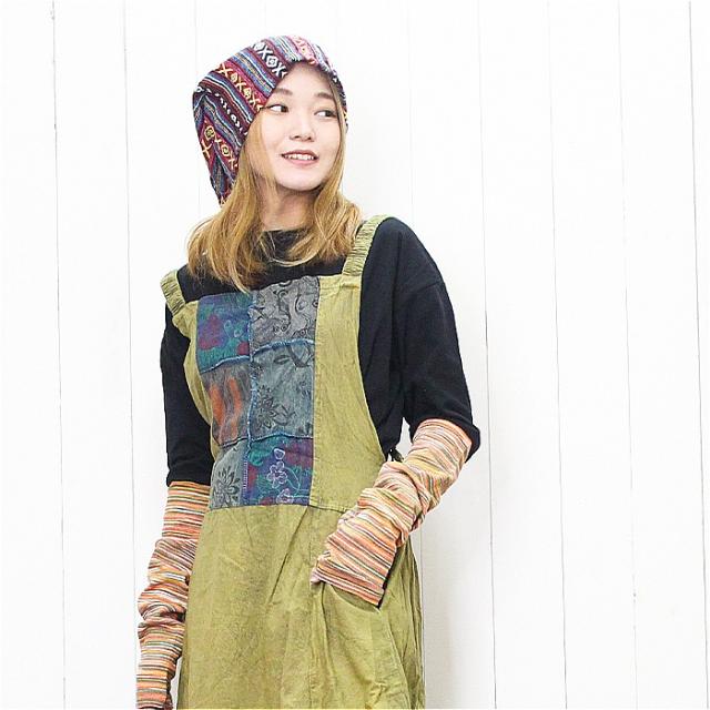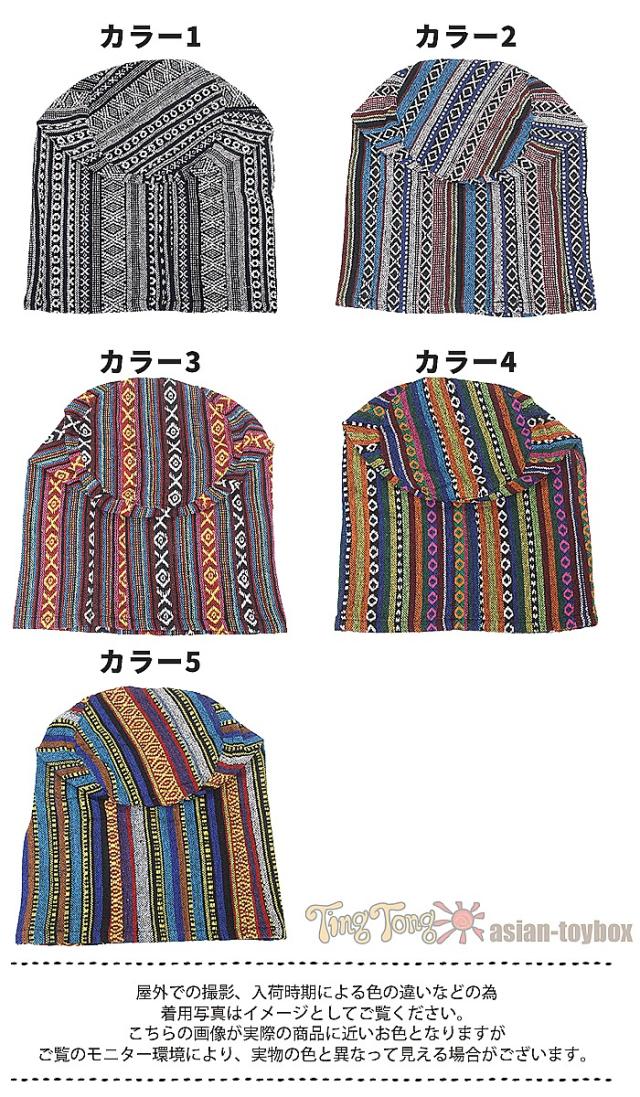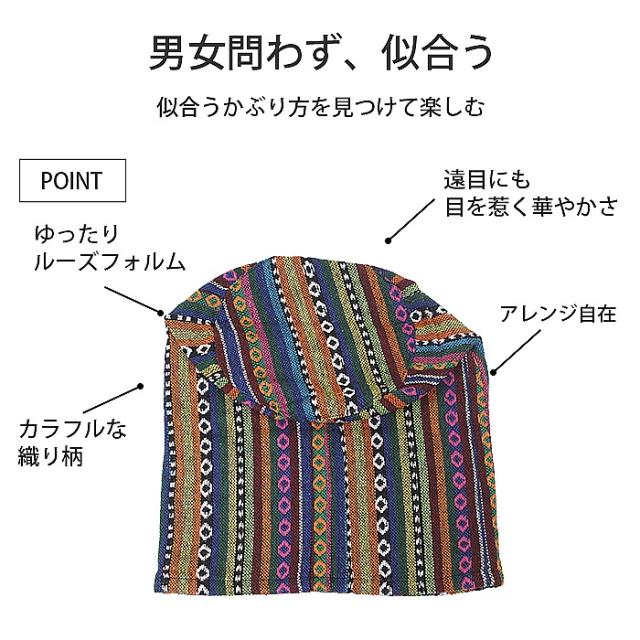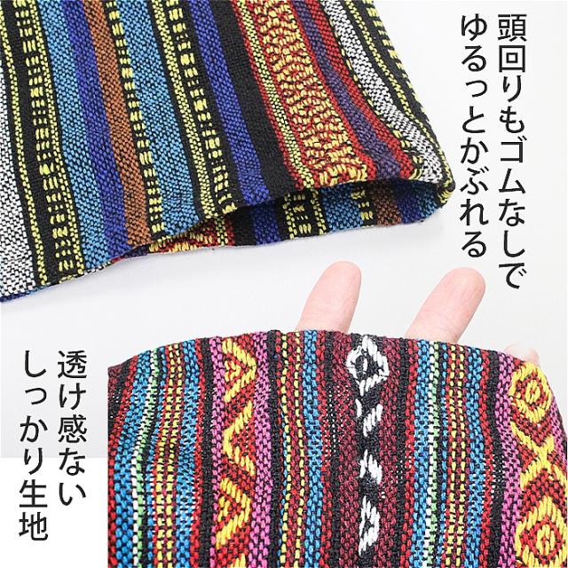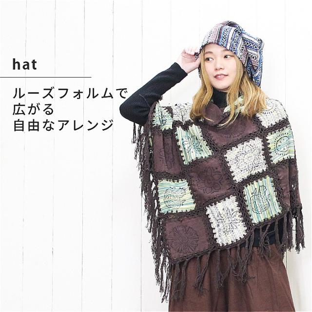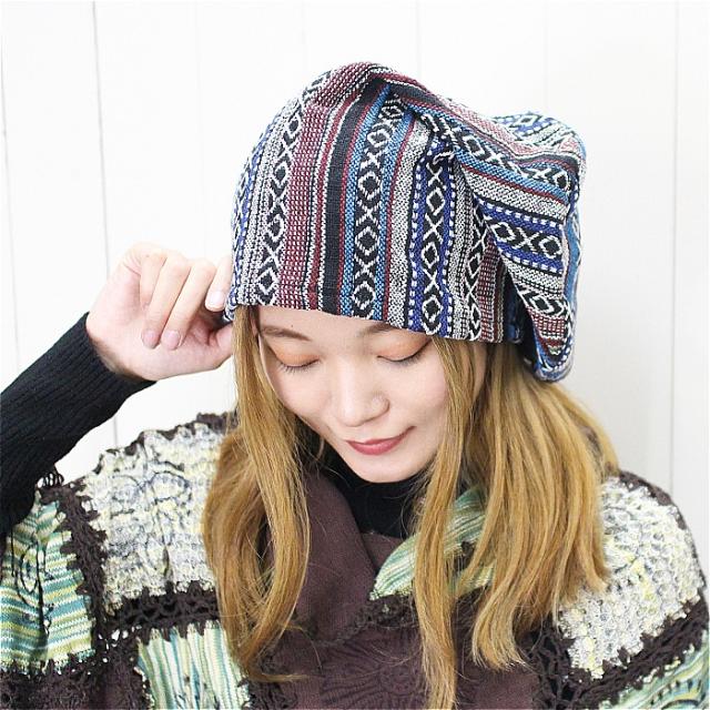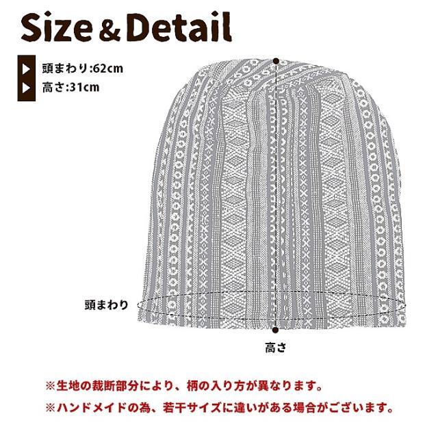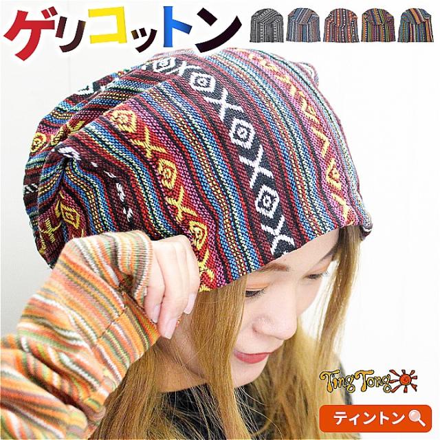 帽子 ビーニー 大きめ フチなし 民族柄 ニット カラフル !ゲリコットンルーズフォルムキャップ 秋冬コーデ 旅行 お出かけ