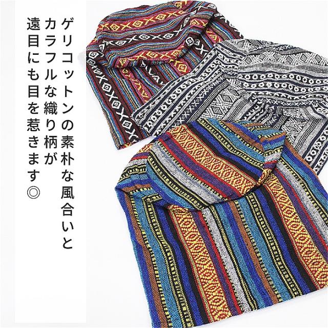 ゲリコットンの素朴な風合いとカラフルな織り柄が