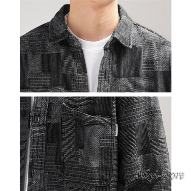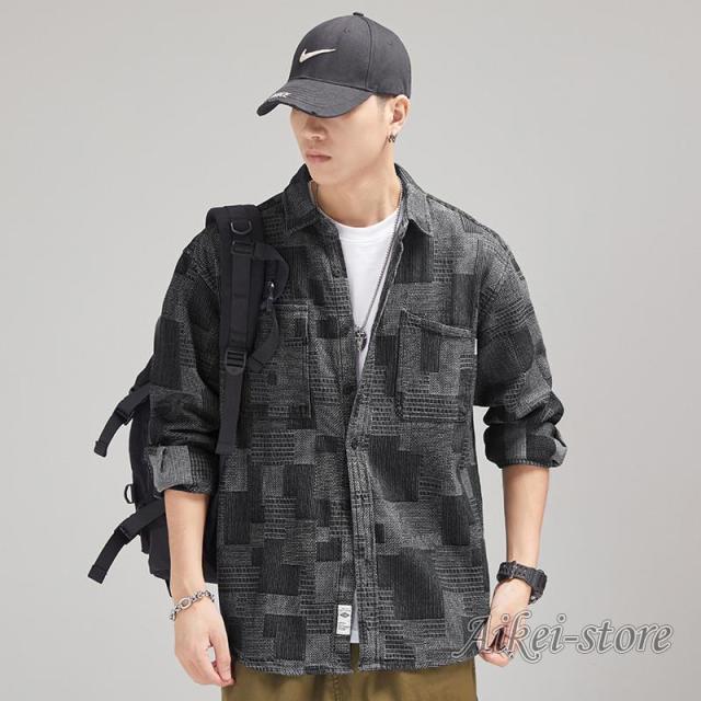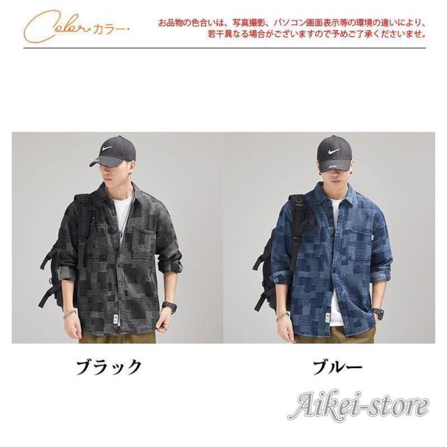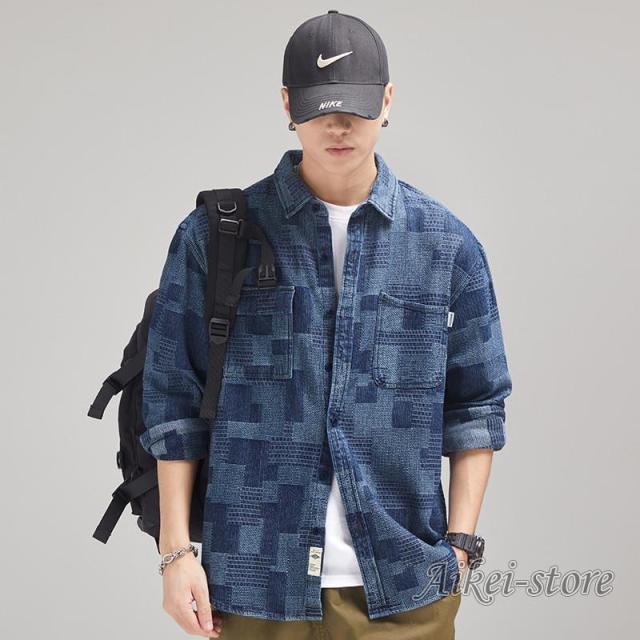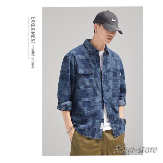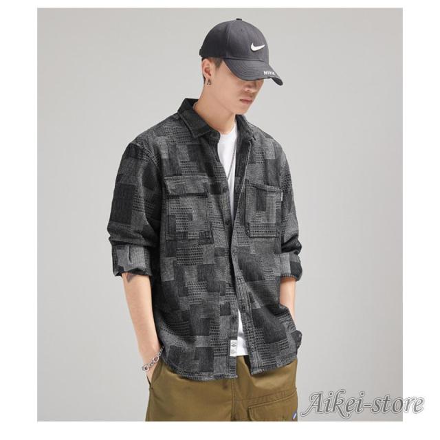 デニムシャツ メンズ 長袖 アメカジ チェック柄 カジュアル 開襟 ジャケット コート 柔らか ゆったり 大きいサイズ おしゃれ ストリート系