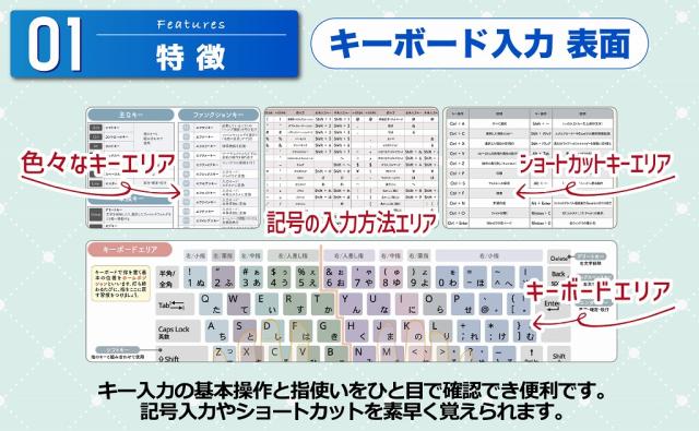 タイピング練習に最適な内容を収録した実用的な下敷きです。