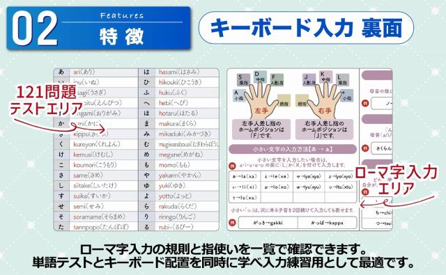 裏面には「ローマ字入力表・小文字入力ルール・単語タイピングテスト」を掲載。