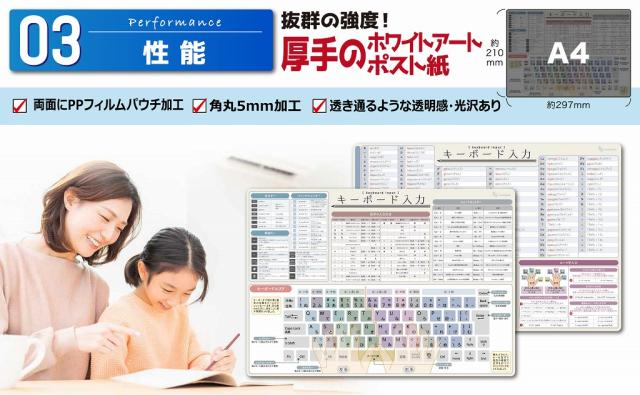 下敷き タイピング練習 A4(21×29.7cm) 両面タイプ キーボード配列表 ローマ字入力表 早見表