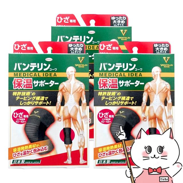 [3個セット]コーワ バンテリン 保温サポーターひざ用 ブラックLL(ゆったり大きめ)※ひざ頭周囲40〜43cm[膝専用 左右共用1枚入り][バンテリン膝サポーター 日本製 Kowa 興和][送料無料] (6045645-set3)