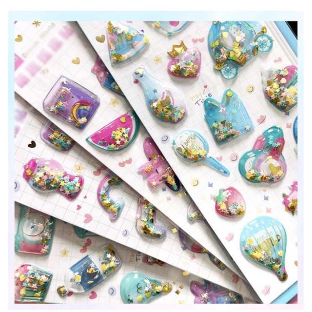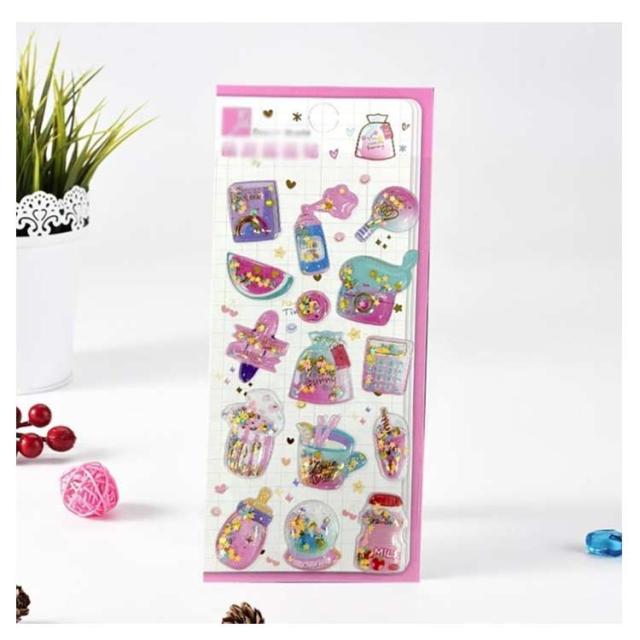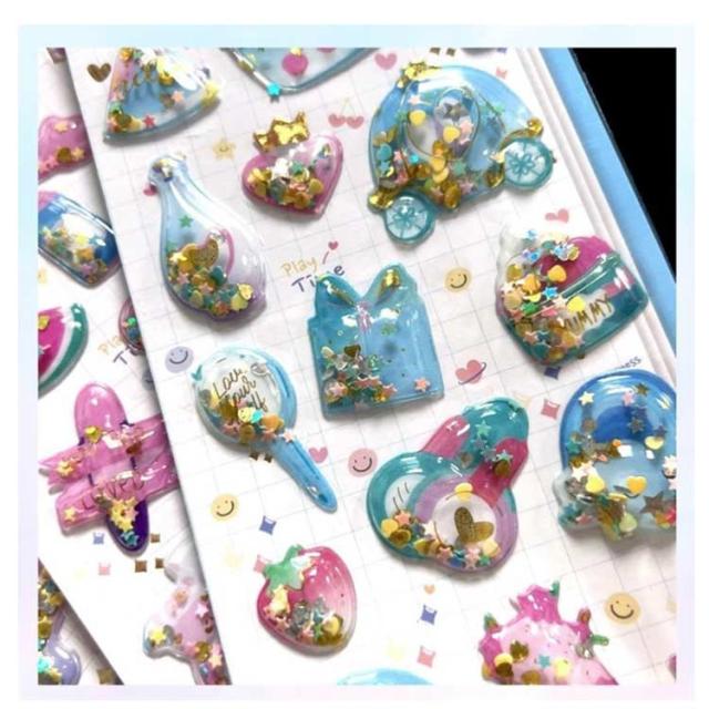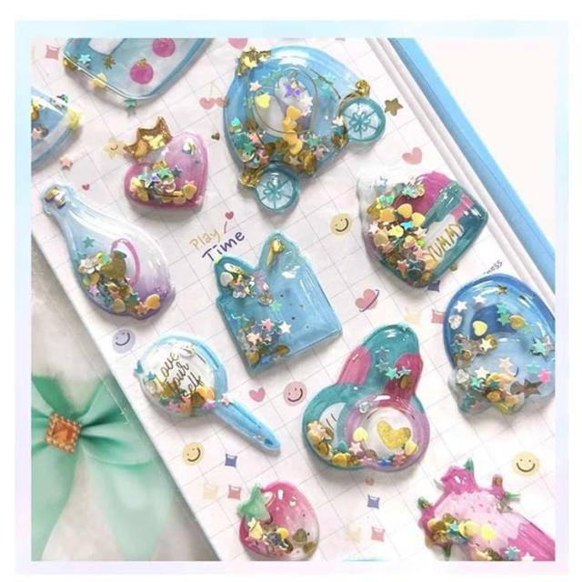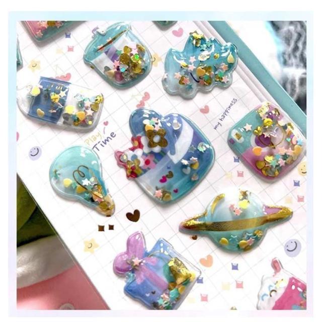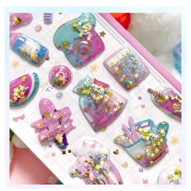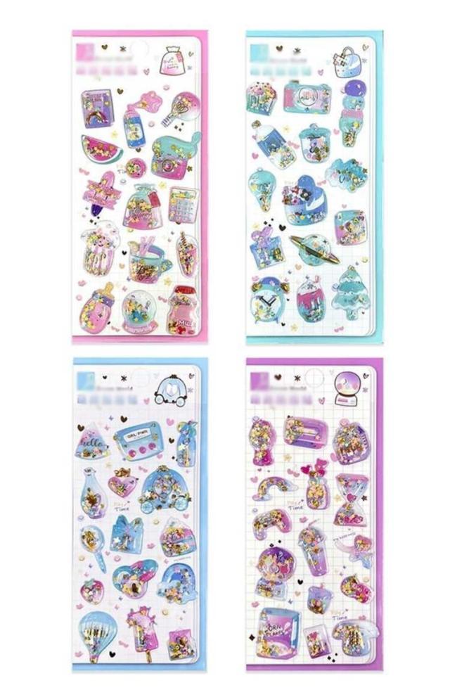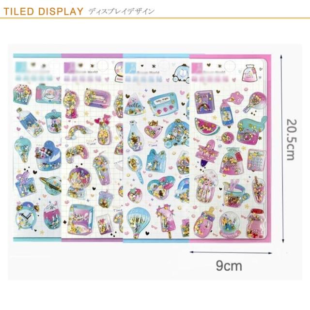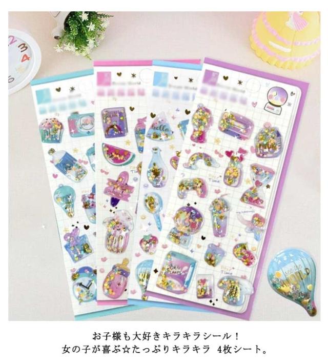 シール帳 ぷくぷくシール ぷくぷく ノート 【4枚セット】カプセルラメシール デコ 立体シール ご褒美シール 女の子 カラフル 小学生 シャカシャカシール 派手 キラキラ 【4枚セット】カプセルラメシール シール帳 友達 交換
