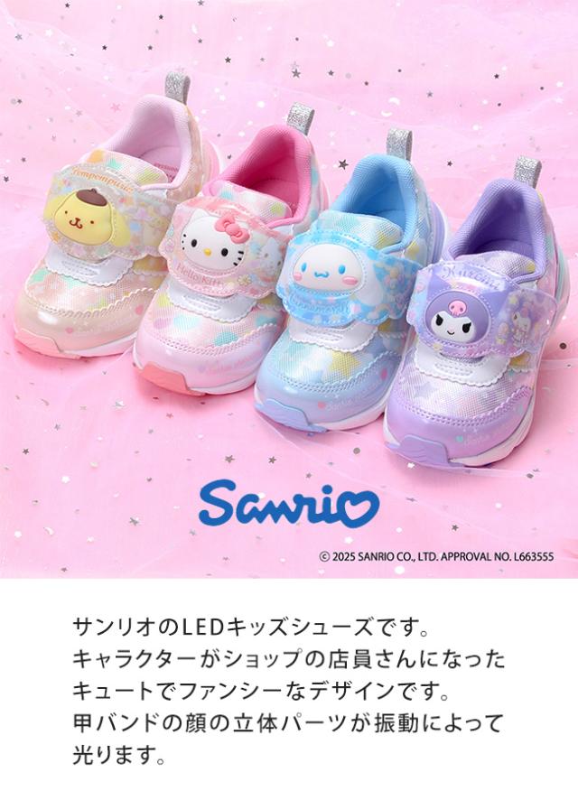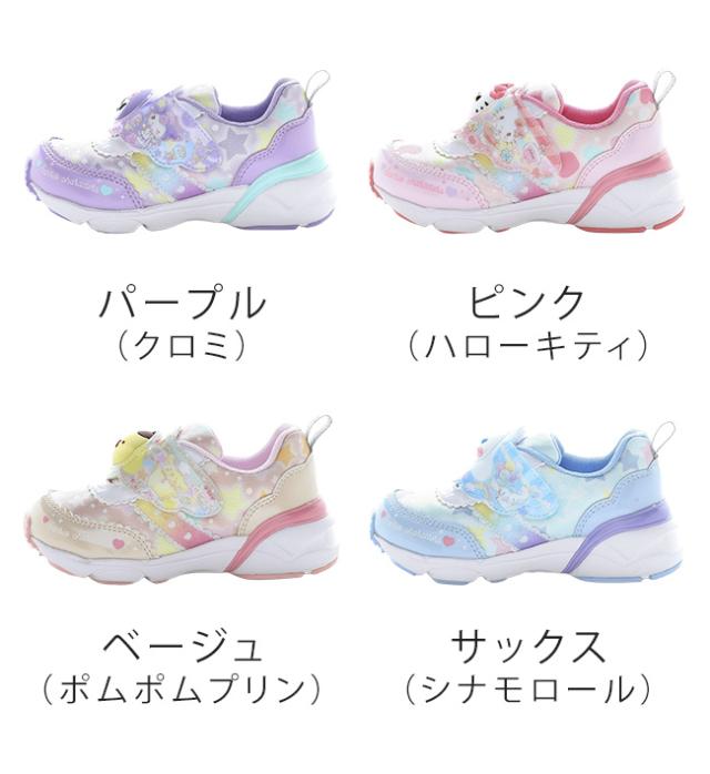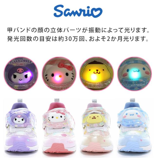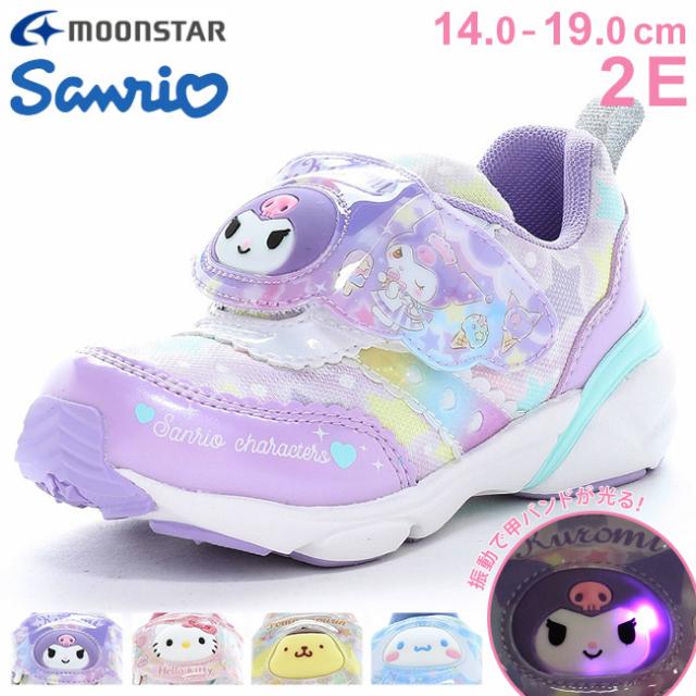 ムーンスター サンリオ スニーカー キッズ 女の子 光る靴 可愛い 履きやすい 歩きやすい 疲れない 2E 軽量 マジックテープ SA C040LE クロミ ハローキティ シナモロール ポムポムプリン ガールズ 子供 幼児 ベビー シューズ 靴