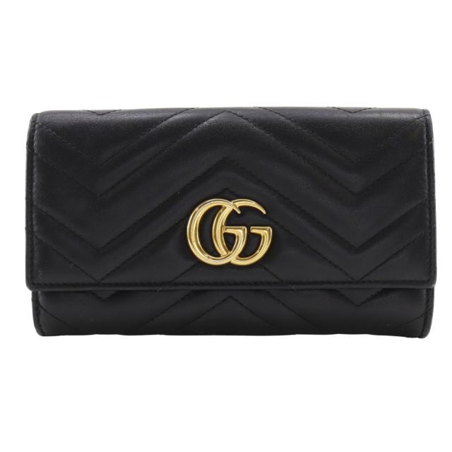 GUCCI グッチ GGマーモント 443436 カーフ 黒 長財布 レディース 【中古】