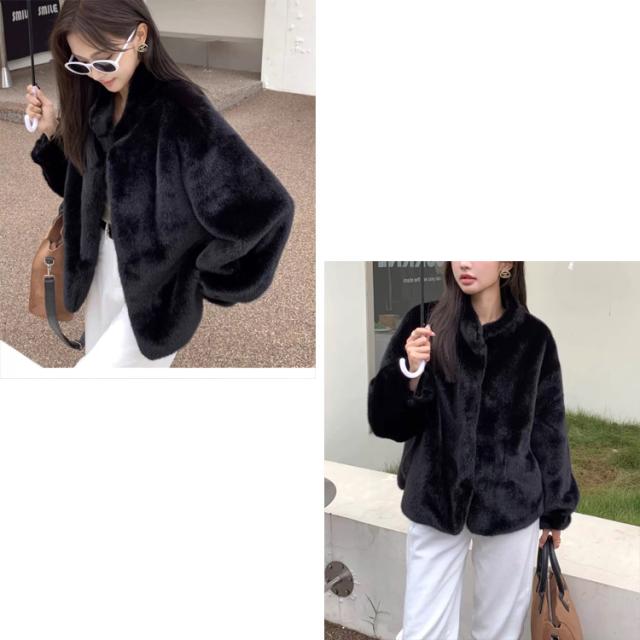 全品送料無料一部除く スタンドカラー フェイクファーブルゾン【即納】海外コーデ ワンホンコーデ フェミニン 綺麗め 羽織り ファージャケット ショートブルゾン ボリューム ルーズ ルーズフィット ゆったり 暖かい 防寒性 厚手 レディース 韓国 流行り トレンド かわいい