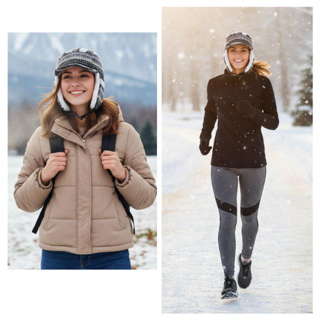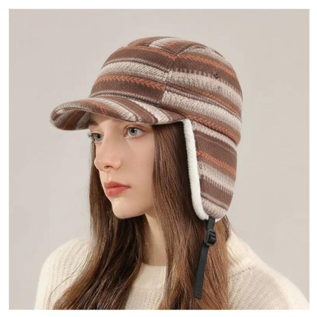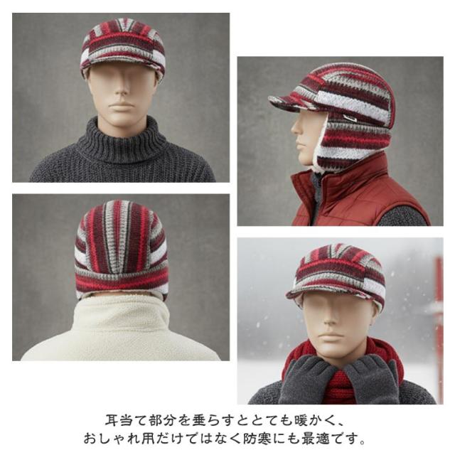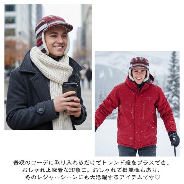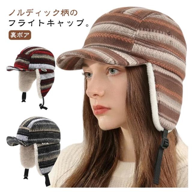 もこもこ ニット帽 防風 キャップ ノルディック柄 裏起毛 あったか レディース 帽子 秋冬 イヤーマフ付き フライトキャップ パイロットキャップ 耳あて付き 裏ボア 裏起毛 暖かい アウトドア 防寒キャップ 釣り 耳当て スポーツ 登山