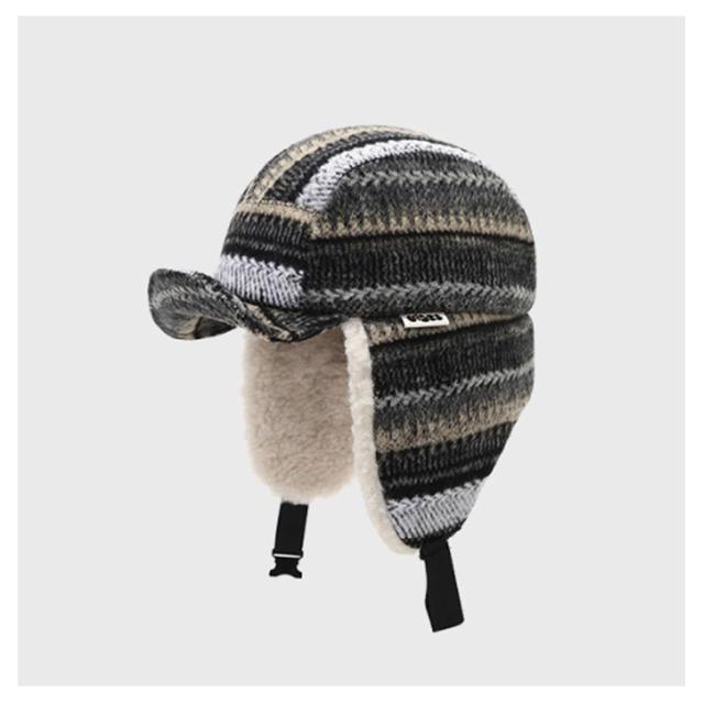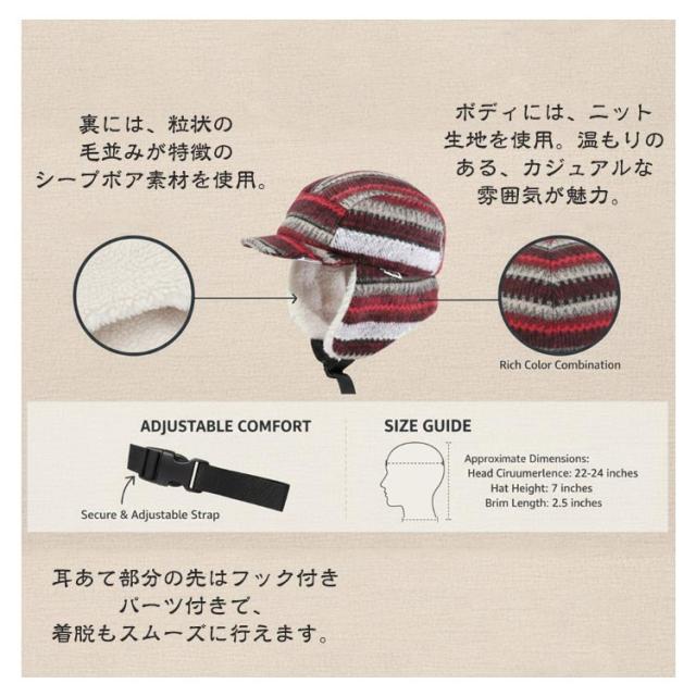 | ノルディック柄のフライトキャップ。【裏ボア】 裏には、粒状の毛並みが特徴のシープボア素材を使用。 ボディには、ニット生地を使用。温もりのある、カジュアルな雰囲気が魅力。 耳当て部分を垂らすととても暖かく、おしゃれ用だけではなく防寒にも最適です。 耳あて部分の先はフック付きパーツ付きで、着脱もスムーズに行えます。 普段のコーデに取り入れるだけでトレンド感をプラスでき、おしゃれ上級者な印象に。おしゃれで機能性もあり、冬のレジャーシーンにも大活躍するアイテムです? | |