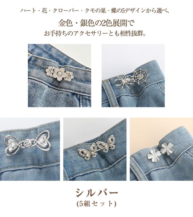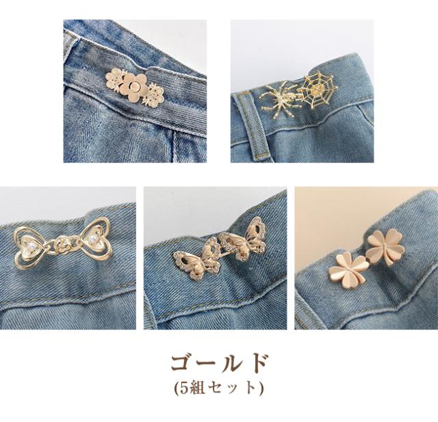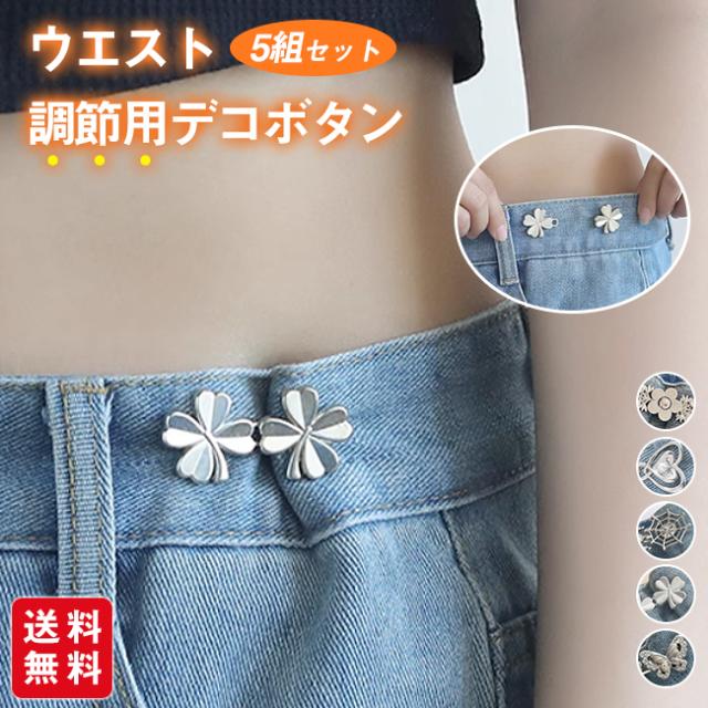ウエスト 調整 アジャスター 5組セット ウエスト調整用ボタン ウエストアジャスター 簡単装着ボタン 針も糸も不要 ズボン ボタン ウェスト クリップ ピン スカート パンツスラックス お洒落 かわいい