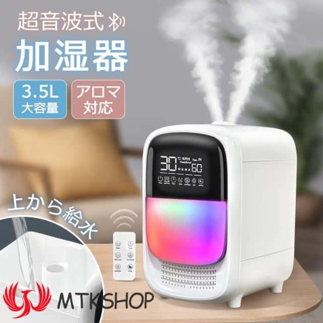 加湿器 超音波式 大容量 卓上 加湿機 大容量3.5L 除菌対策 3段階調節 卓上加湿器 湿度設定 湿度調節 空焚き防止 UVライト付き タイマー アロマ対応 静音 軽量