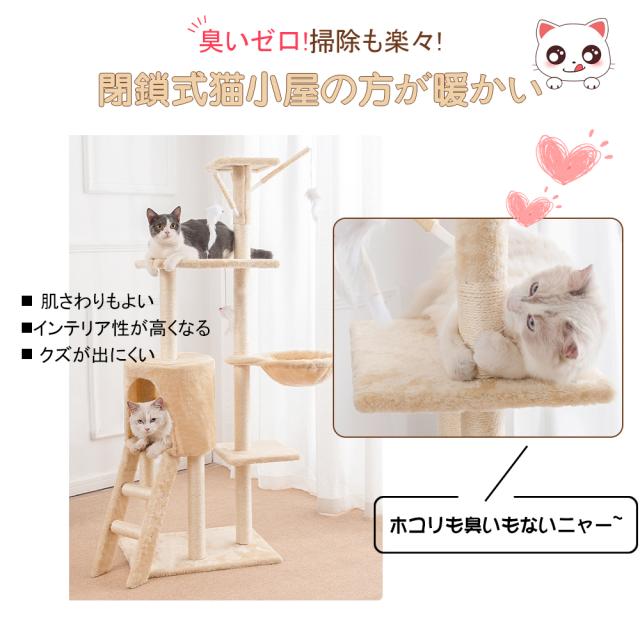キャットタワー 据え置き 猫ハウス 組み立て式 運動不足解消 爪磨き ネコのおもちゃ キャットランド 隠れ家 ネコ用品 ストレス解消 室内飼い 階段 多頭