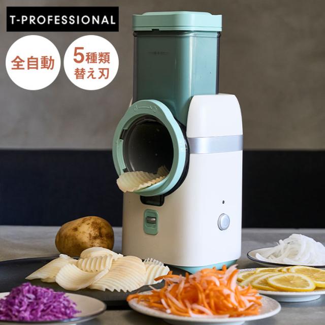 T-PROFESSIONAL 電動スライサー ザ・パーフェクトオートスライサー 多機能 マルチ 野菜 スライサー 千切り 電動 玉ねぎ じゃがいも 大根 スライサー セット 5種類の刃 安全装置搭載(代引不可)【送料無料】