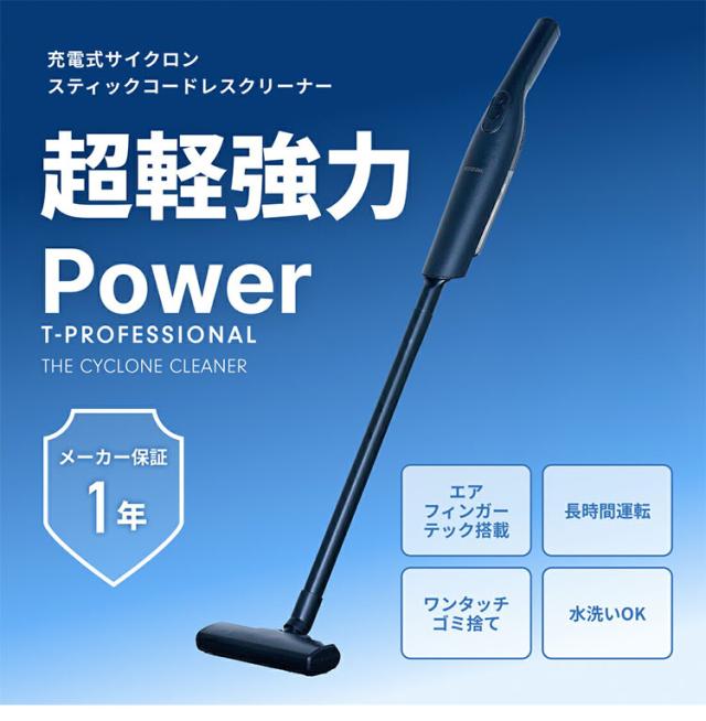 T-PROFESSIONAL コードレス掃除機 ザ・サイクロンクリーナー スティック ハンディ 2WAY サイクロン式 ハンディクリーナー 掃除機 コンパクト 水洗い可能 軽量 軽い 8000Pa 3種類のノズル(代引不可)【送料無料】