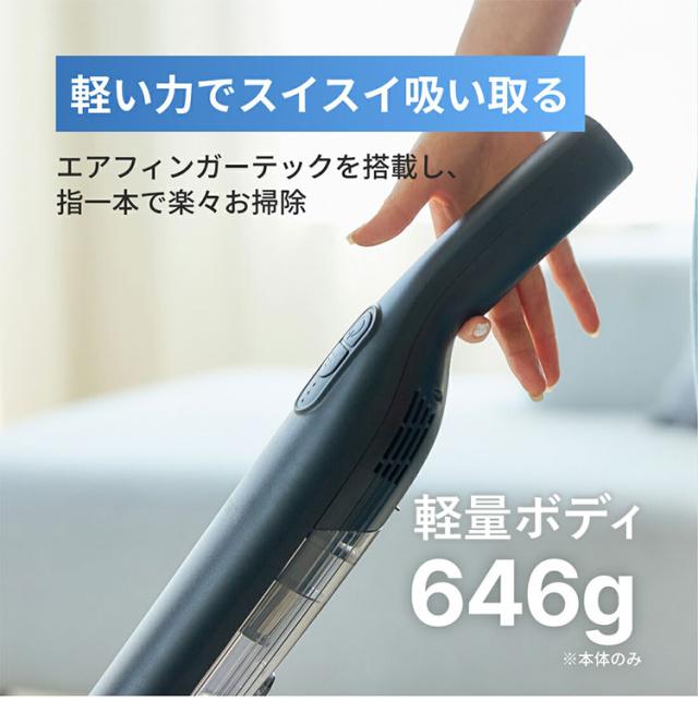 640gの軽量ボディなのに、8000Paの吸引力でゴミや埃を吸い取ります。