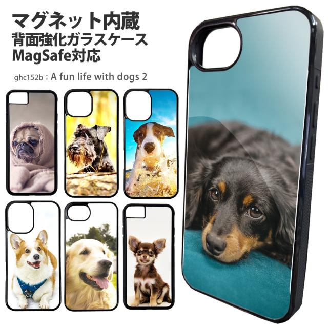 スマホケース 背面ガラス iPhone 17 iPhone 16e SE 第3世代 バンパーケース 強化ガラス MagSafe マグネット内臓 iPhone15 SE 第2世代 アイフォン デザイン 犬 フォト A fun life with dogs2 いぬ好き犬派 チワワ トイプードル
