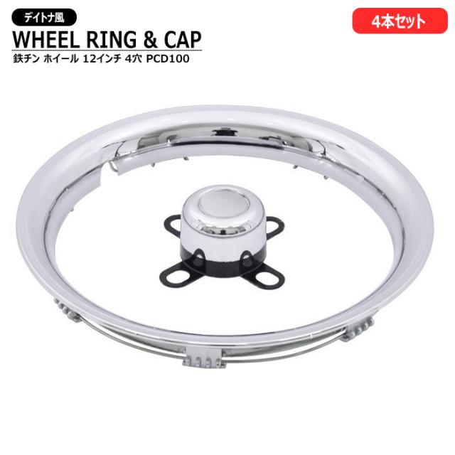 12インチ デイトナ風 メッキ ホイールリング & センターキャップ 4本セット 1台分 リム トリム ハブキャップ 新品 【キャップシールなし】