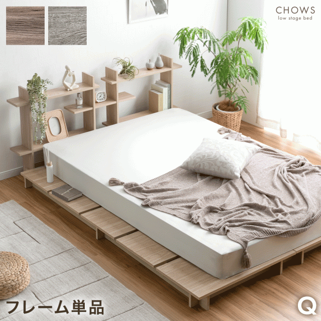 【本日P5%還元】 【新発売プライス!2/1迄】 ディスプレイを愉しむ。ステージベッド クイーン 宮棚付き ベッドフレーム 単品 木製 ダブルベッド ロータイプ 宮付き 宮棚 ステージベット ローベッド フロアベッド 木製ベッド ベッド ベット すのこ