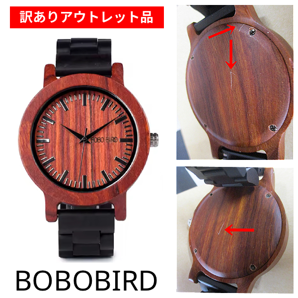 訳あり アウトレット キズあり 木製 腕時計 クォーツ サンダルウッド シンプル メンズ ボボバード 男性用 BOBO BIRD MENS Watch Wood 木目 天然素材 エボニーウッド ウォッチ