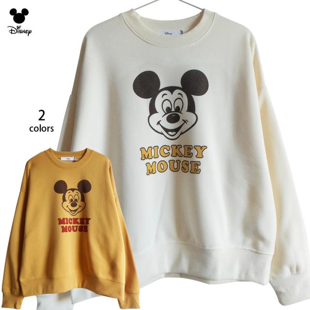 送料無料 ディズニー ミッキー ミッキーマウス トレーナー 裏起毛 レディースビッグサイズ メンズ 古着風デザイン ビンテージ風 アメカジ スウェット disney アメリカン レトロ スマイル ゆったり TDL 秋冬 ペアルック 大人 おしゃれ 白 アイボリー 黄色 マスタード イエロー