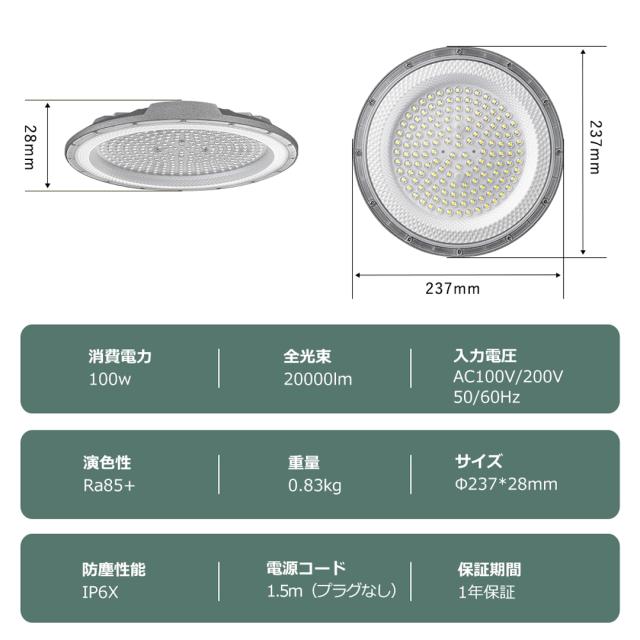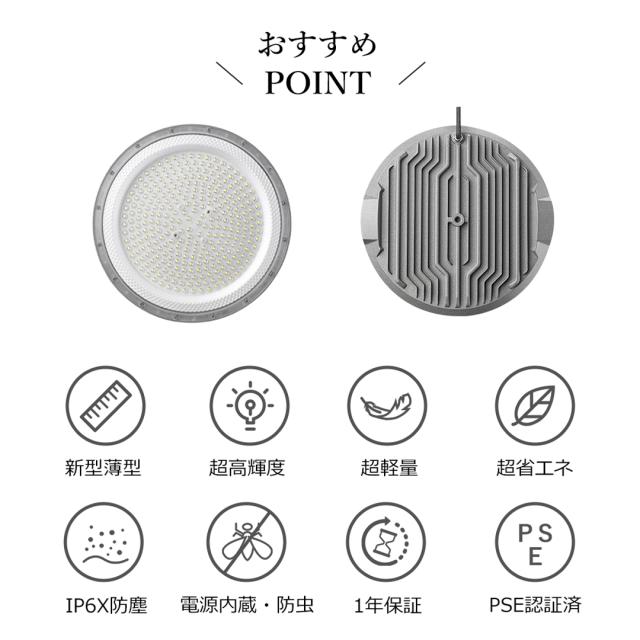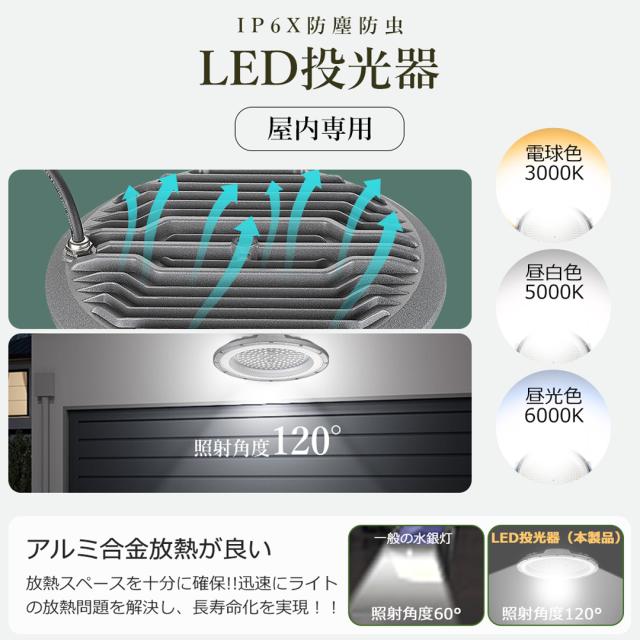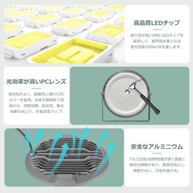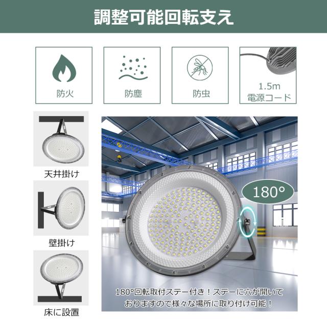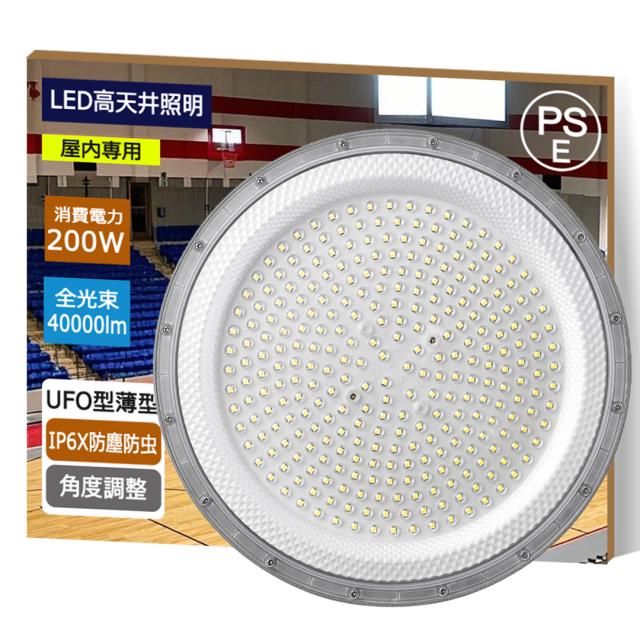 LED高天井照明 led投光器 投光器 作業灯 高天井用led照明 200w 2000W水銀灯相当 ufo型ledハイベイライト led投光器 小型 薄型 200W 高輝度 40000lm UFO型 投光器 IP6X防塵 広角ライト 120° 水銀灯代替 作業灯 工場照明 天井照明 駐車場 運動場 1.5Mコード付き 180°角度調整