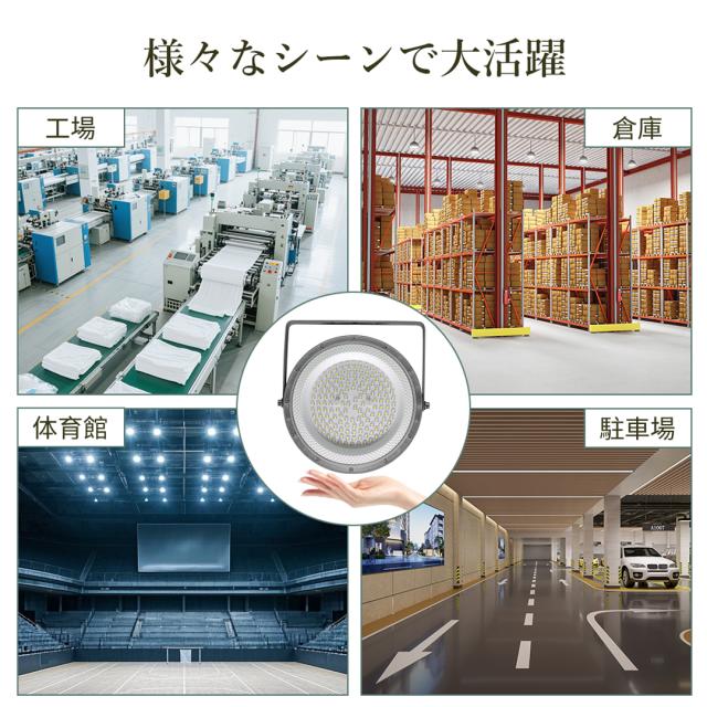 - 工場、倉庫、物流センター、工事現場、作業照明、ガソリンスタンド、ガレージ、体育館、ゴルフ場、野球場、卓球室、コンサート会場、東京ドーム、プール、武道館、庭園、学校、図書館照明など様々な所に通用します。