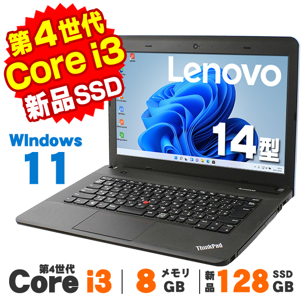 ノートパソコン 中古 Windows11 Webカメラ Lenovo ThinkPad E440 14インチ 第4世代 Core i3 4000M メモリ8GB 新品SSD128GB DVDROM 無線LAN Bluetooth Windows11 Pro Office付き