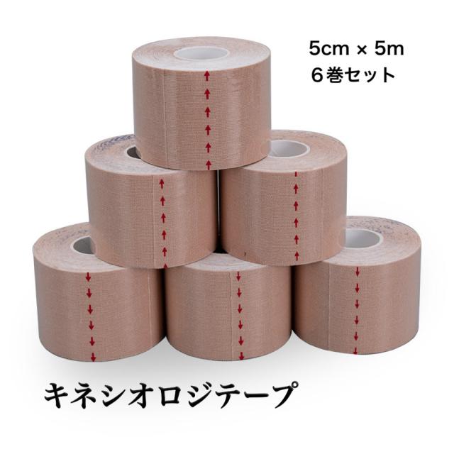 キネシオロジテープ テーピングテープ 5cm×5m 4巻 6巻 伸縮性 撥水 目盛り線 捻挫 スポーツ トレーニング 肩 腰 腕 膝 足首 送料無料