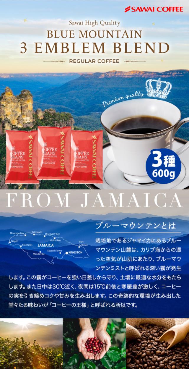 コーヒー 豆 粉 珈琲豆 豆のまま 上品な香り 極上の一杯 澤井珈琲 ブルーマウンテン 3種 飲み比べ 60杯分 福袋 200g×3袋 なめらか 雑味なし