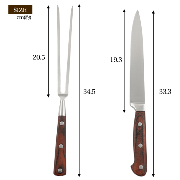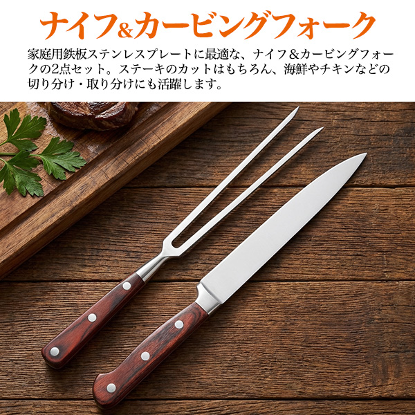 ナイフ&カービングフォーク 家庭用鉄板ステンレスプレートに最適 切り分け キッチンナイフ カトラリー ミートフォーク サービングフォーク パーティー イベント 演出 大きい 長い 送料無料