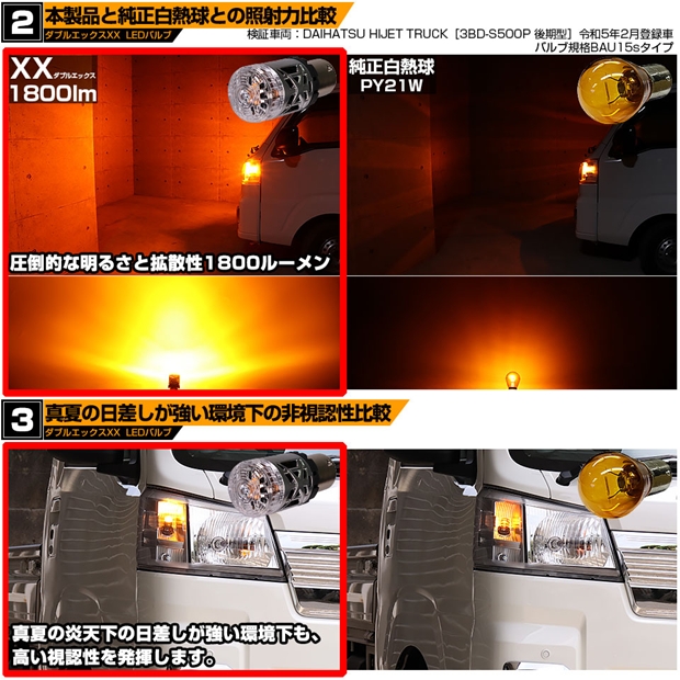 単 ハイフラ対策不要!S25[BA15s]XXダブルエックス1800lm ハイフラ防止抵抗内蔵 ウインカーランプ用LEDバルブ 1800lm カラー:アンバー 1セット2個入
