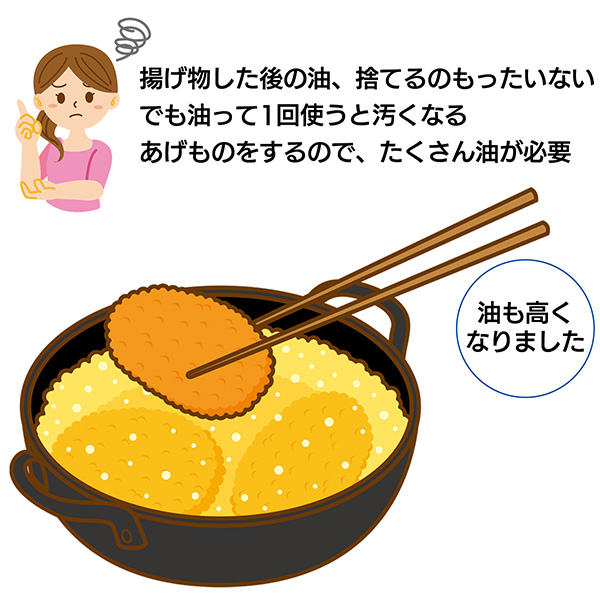 揚げ物した後の油、捨てるのもったいないし、でも油って1回使うと汚くなるし…