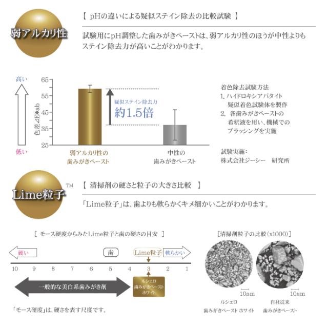 4つの力で歯を白く!弱アルカリ性で汚れをうかし歯にやさしいLime粒子で汚れを落とす