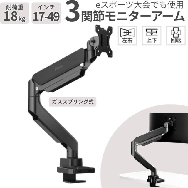 モニターアーム | ガススプリング | 大型モニター | ウルトラワイド | デスク環境改善 | ゲーミング | eスポーツ | VESA対応 | シングルモニター | 27インチ | 32インチ | 49インチ | 高耐荷重 | クランプ | グロメット