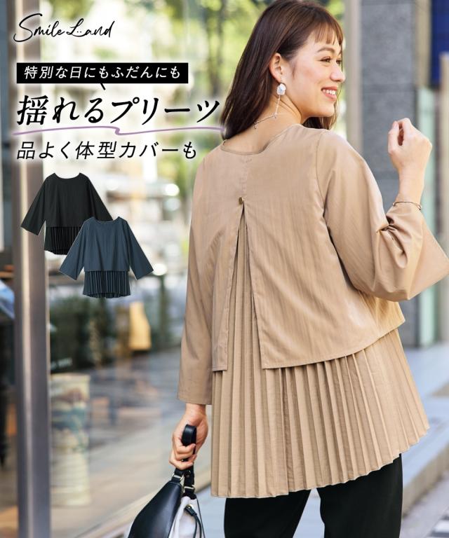 シャツ ブラウス レディース バック シャン プリーツ チュニック 春 秋 冬 | L/LL/3L | ニッセン nissen