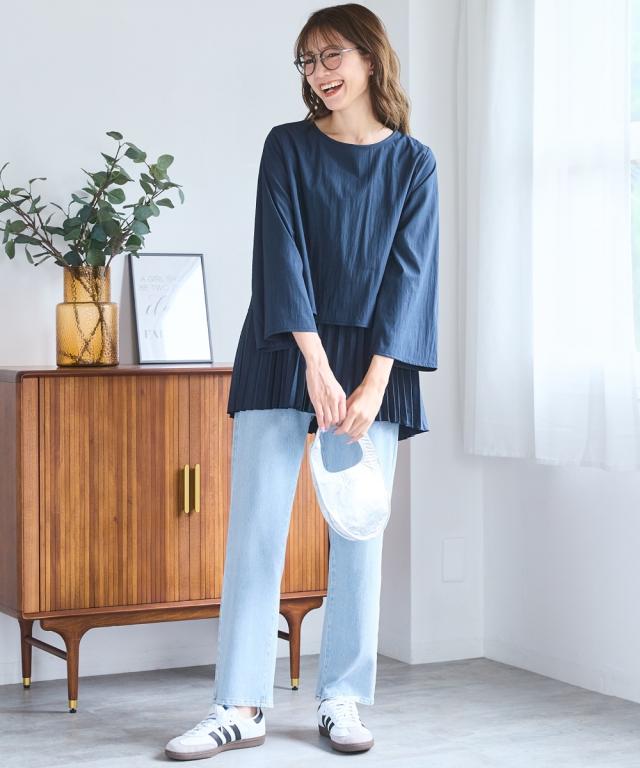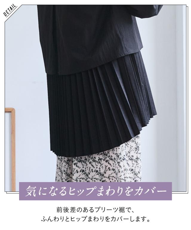プリーツが描く華やぎチュニック ■デザイン 裾から覗くプリーツが印象的な、主役級ブラウス。揺れるプリーツが気になるお腹周りを優しくカバーし、体型カバー効果も期待できます。ゆったりとしたシルエットで、リラックス感のある着心地ながらも、上品な印象を与えます。 ■素材 さらりとした肌触りの良い生地を使用しており、これからの季節にぴったりの軽やかな着心地です。 ■おすすめのスタイリング シンプルなパンツやスカートと合わせるだけで、華やかなコーディネートが完成します。晴れの日にはキレイ目ボトム&パンプスにパール等少し長めのアクセを合わせて。オフィススタイルからカジュアルなお出かけまで、幅広いシーンで活躍する一枚です。