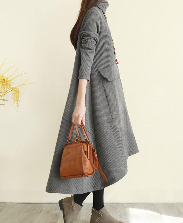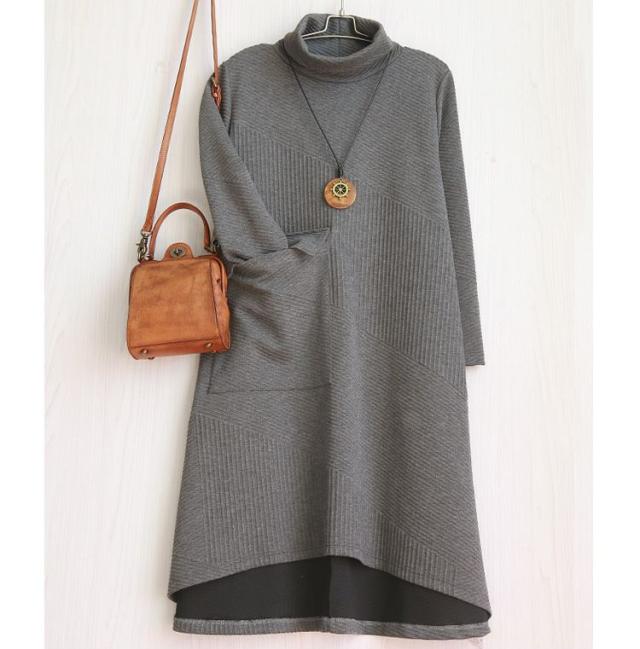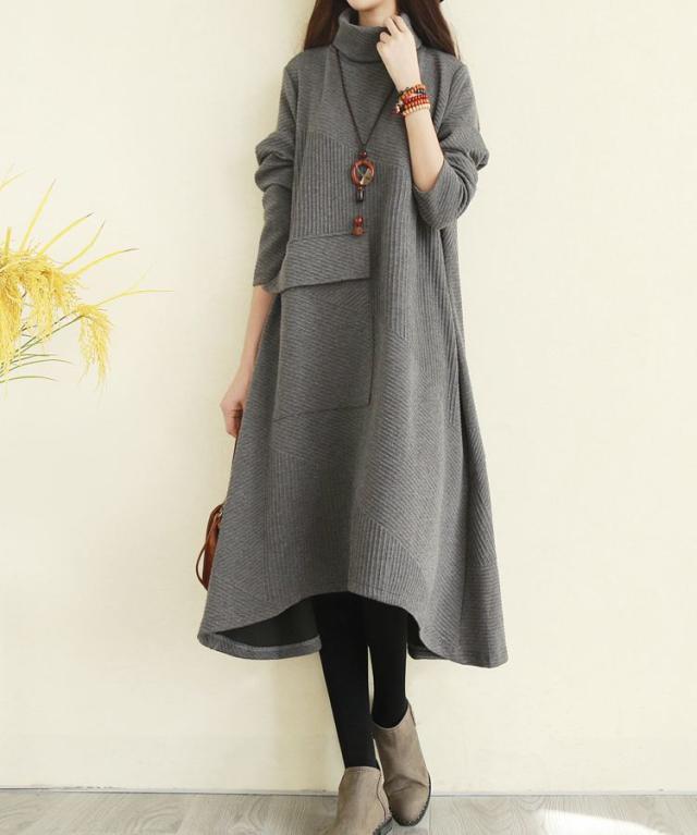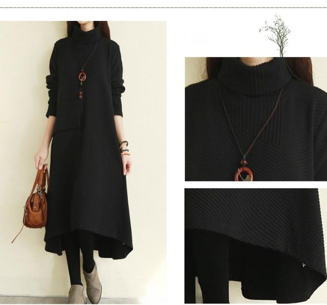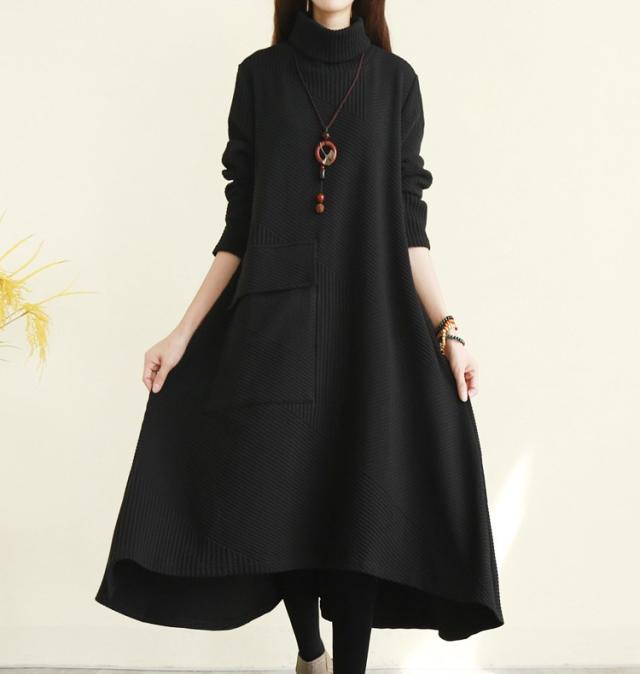 ワンピース レディース 秋冬 ロングワンピース 長袖 チュニック ロングワンピ ミモレ丈 タートルネック 無地 マキシワンピース 大きいサイズ 体型カバー ハイネック フレア Aライン