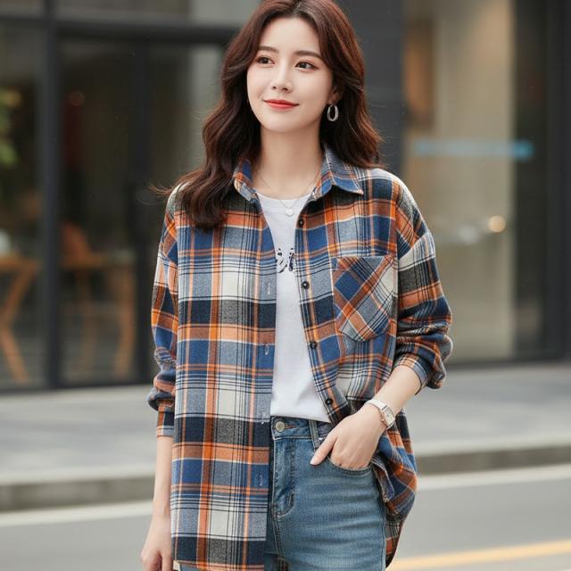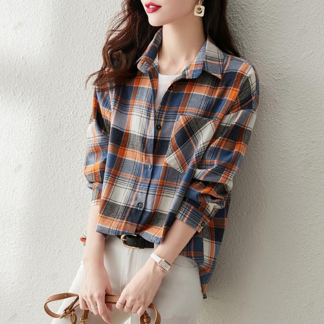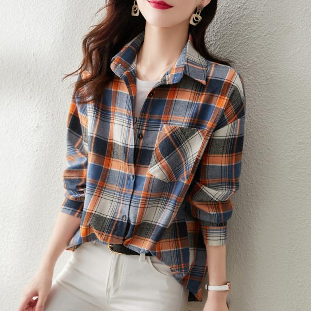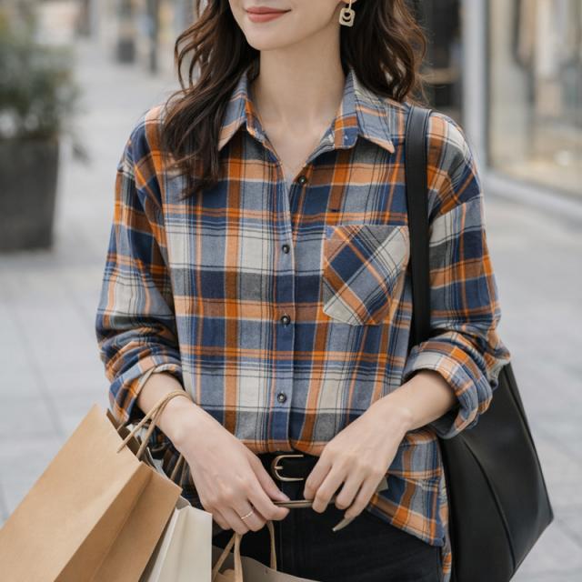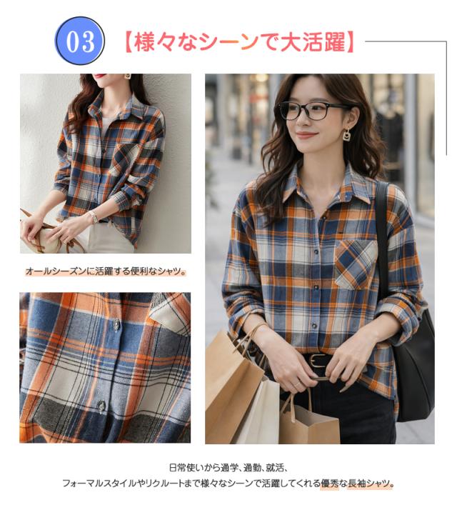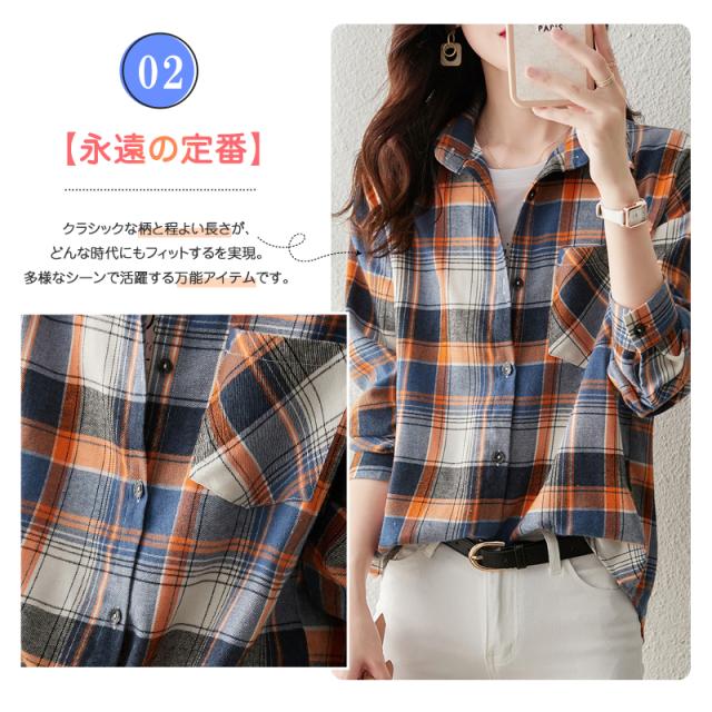 チェックシャツ 長袖 レディース 長袖シャツ チェック柄 前開き シャツブラウス トップス ゆったり ボタンシャツ カジュアル 通勤 通学 春 秋 冬